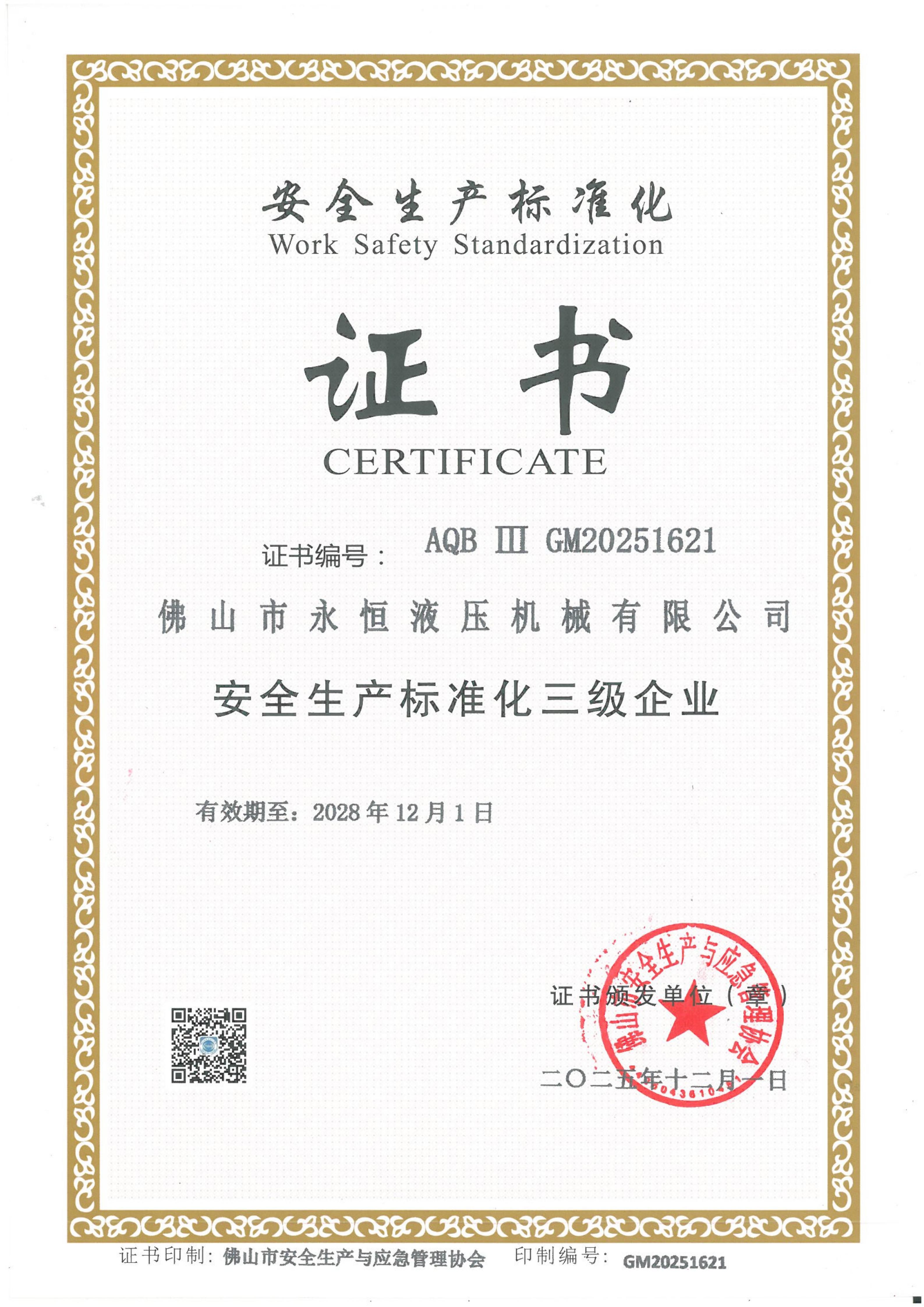 安全生產(chǎn)標準化三級企業(yè)